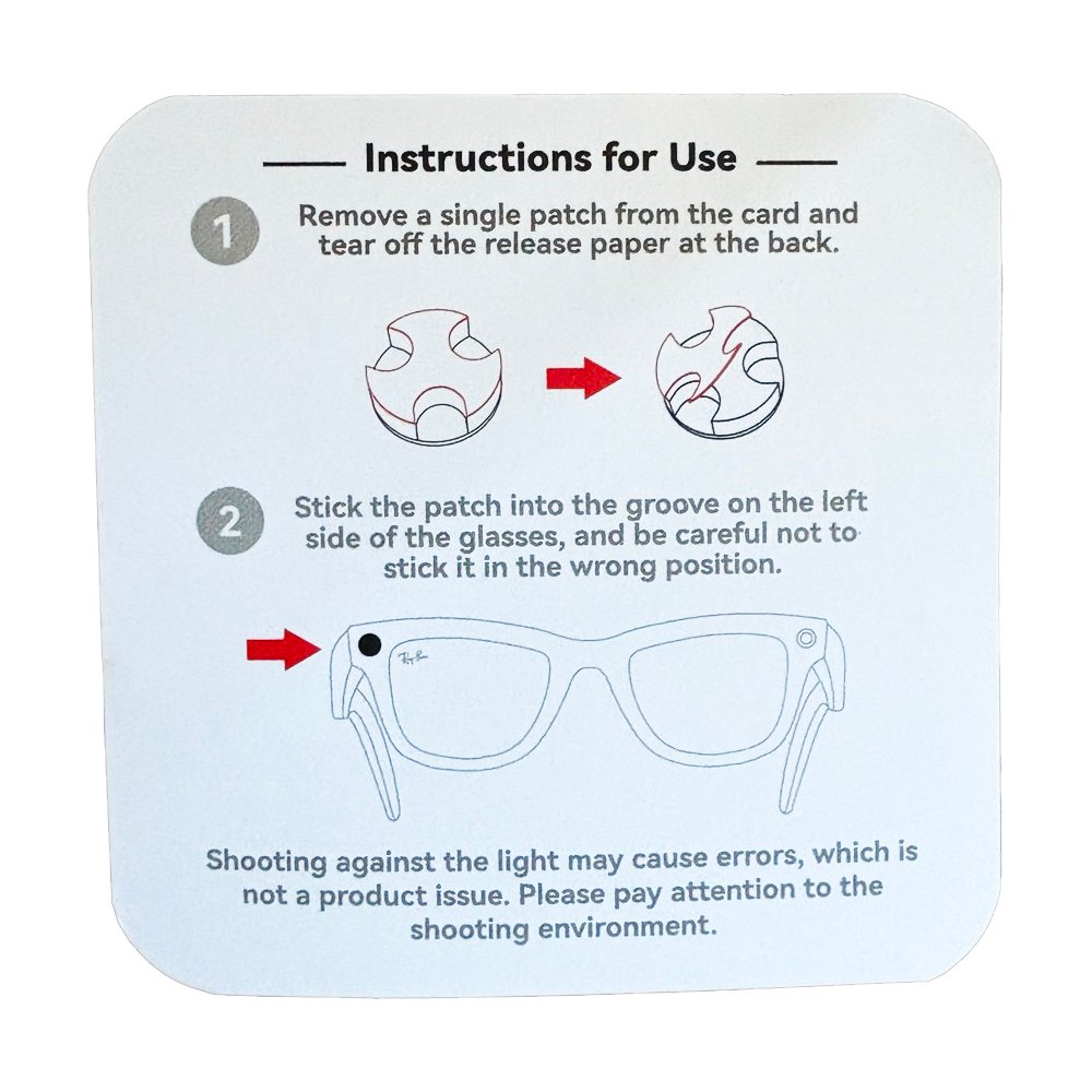 Накладка призначена для маскування LED-індикатора під час роботи окулярів, забезпечуючи конфіденційність і акуратний зовнішній вигляд.