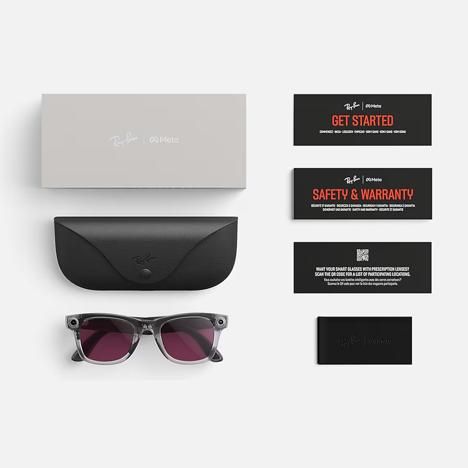 - Комплектація: смарт-окуляри, зарядний футляр, серветка для чищення, короткий посібник
